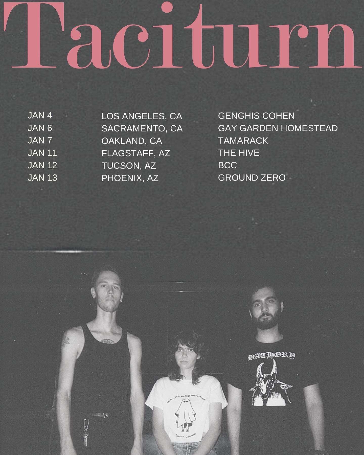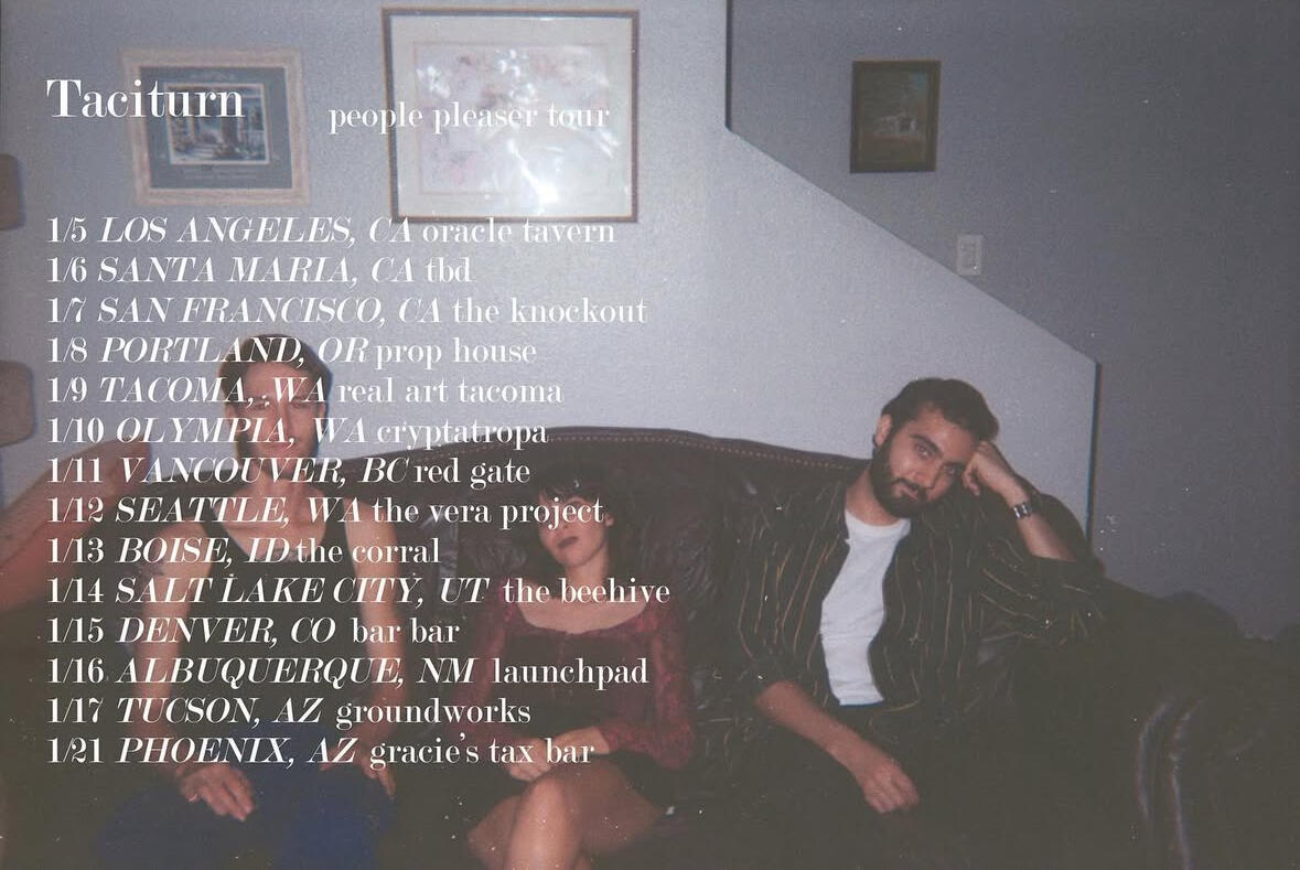 After a biblical exodus from the faraway land of D.C., Taciturn arrived in Phoenix, Arizona with the tendrils of a pre-existing musical career, having already released a live album with Dischord records and their 2019 full-length debut, Punk Death. They’ve played alongside the likes of Flooding and Knifeplay. In 2023, frontman Nyle Hamidi began recording and filming shows in Arizona, and the rest is Dead Mothers history. Taciturn was another founding band in Dead Mothers Collective’s roster, and their fans have waited impatiently for their upcoming sophomore album.