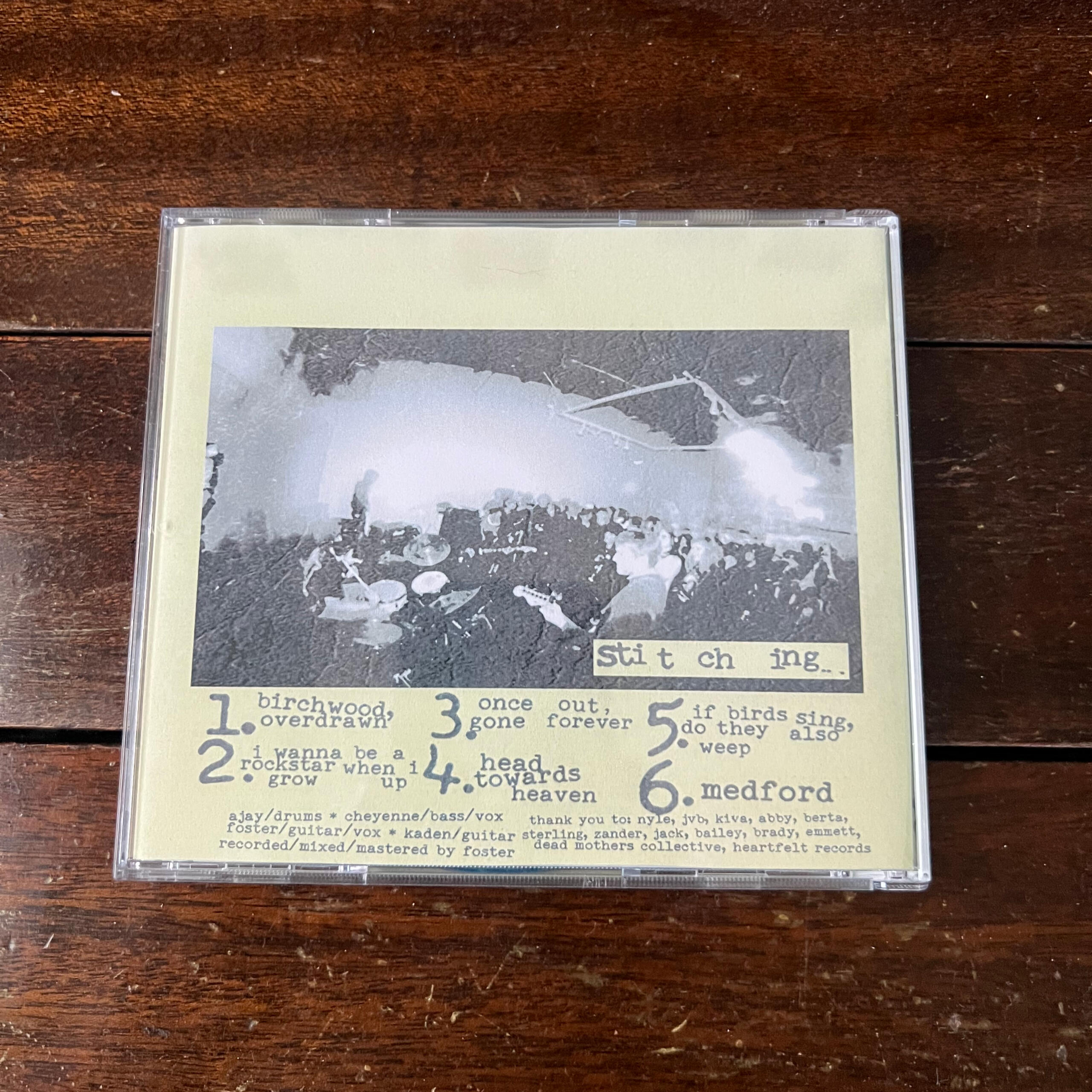 Stitching combines soft and groovy experimentation with a blend of screamo and math rock, taking inspiration from a plethora of different sources. Hailing from Flagstaff, Arizona, their debut EP was met with immediate praise in the Arizona scene and beyond. They joined Dead Mothers Collective in 2025 to roll out this debut and future projects.